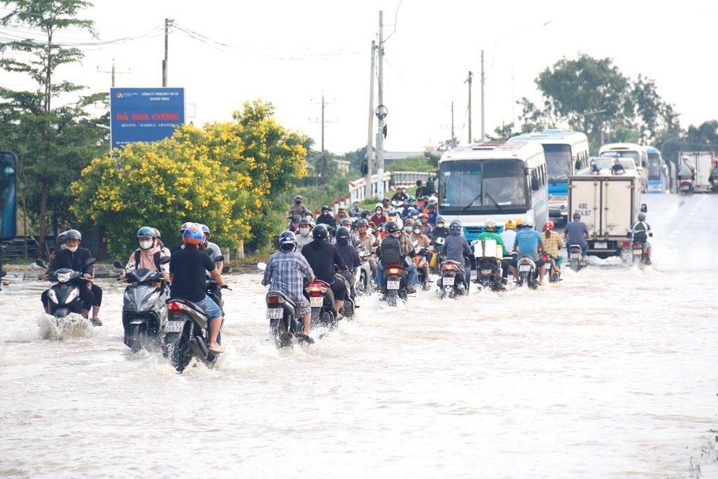 Một số phường ven biển tỉnh Lâm Đồng tạm thời gián đoạn lưu thông do bị ngập sâu