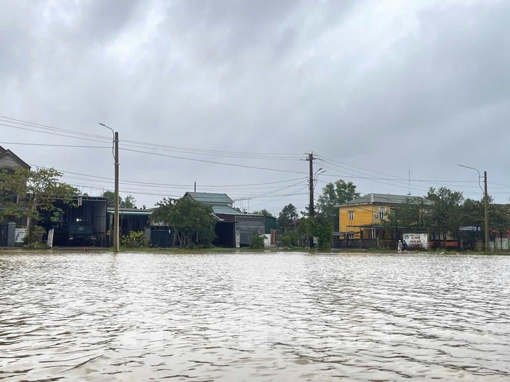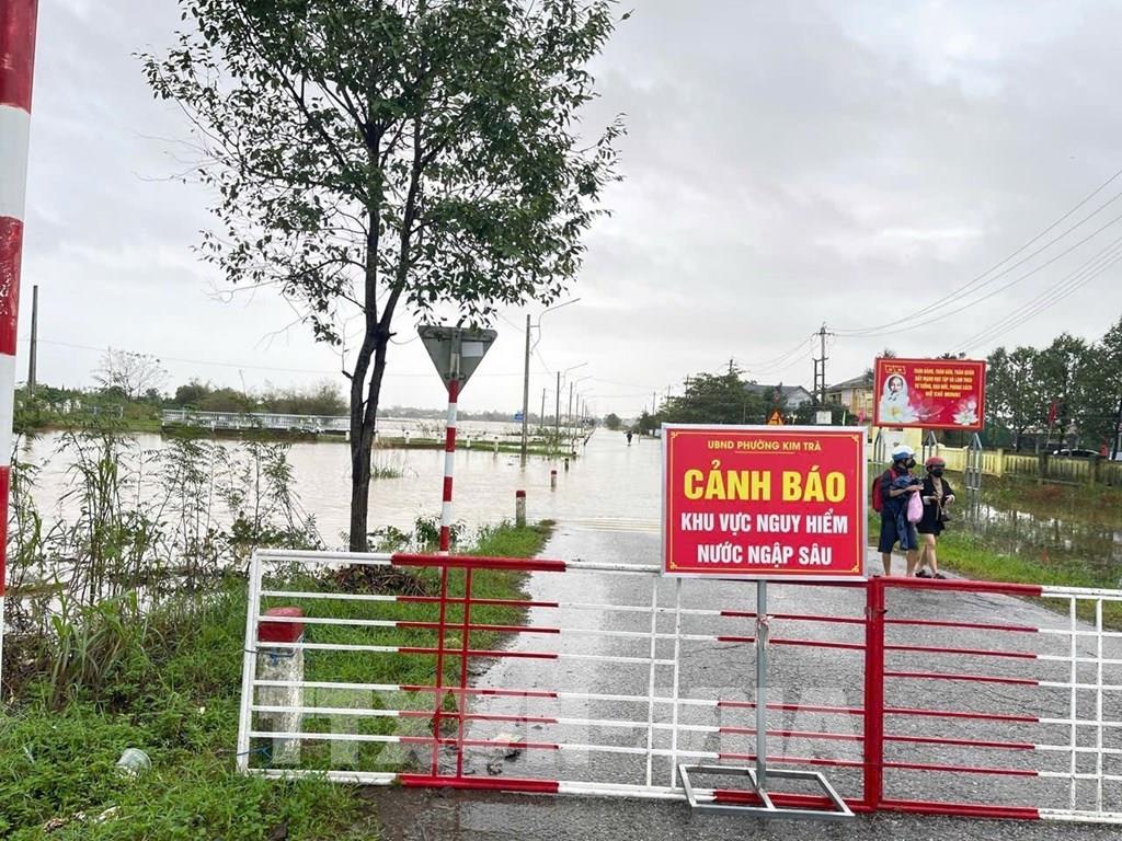 Tuyến đường của phường Kim Trà bị cấm lưu thông qua lại do ngập sâu. Ảnh: Mai Trang- TTXVN