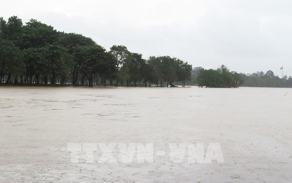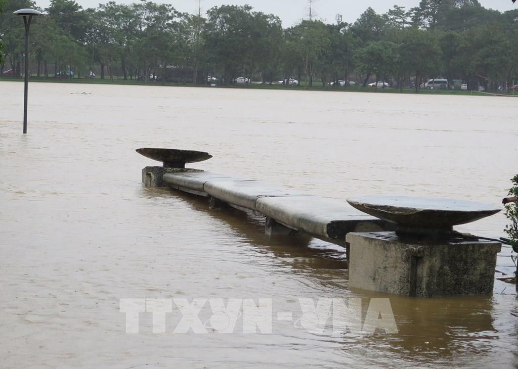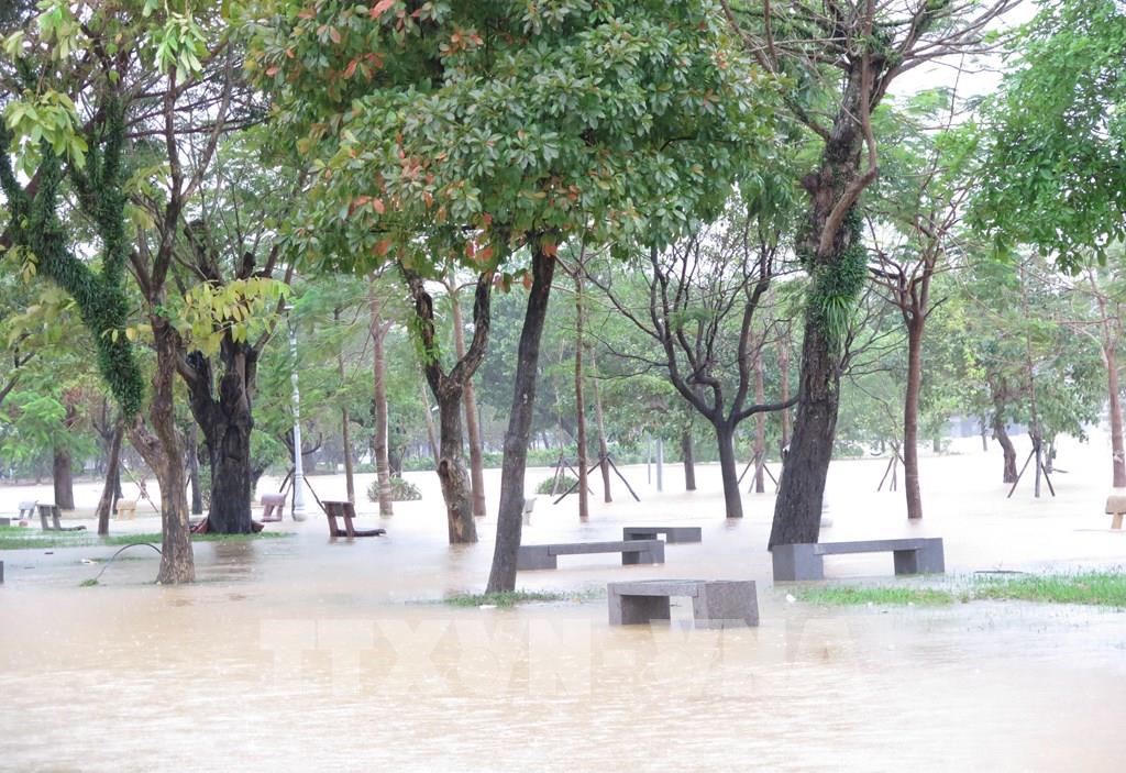 Công viên ở bờ Nam sông Hương, thành phố Huế bị ngập do lũ trên sông Hương dâng cao sáng 17/11. Ảnh: Nguyên Lý-TTXVN