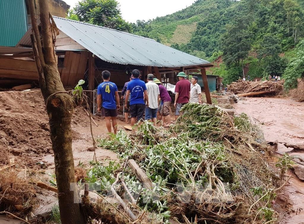 Cảnh tan hoang, ngổn ngang rác, thân cây và bùn đất do lũ cuốn về sau trận lũ quét lịch sử 20 năm mới xuất hiện trở lại. Ảnh: Xuân Tiến - TTXVN