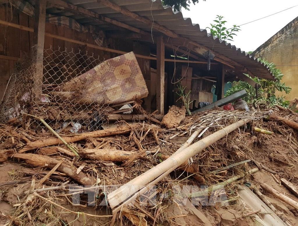 Nhà công vụ trường Tiểu học Nậm Nhừ bị lũ ống, lũ quét tàn phá. Ảnh: Xuân Tiến - TTXVN