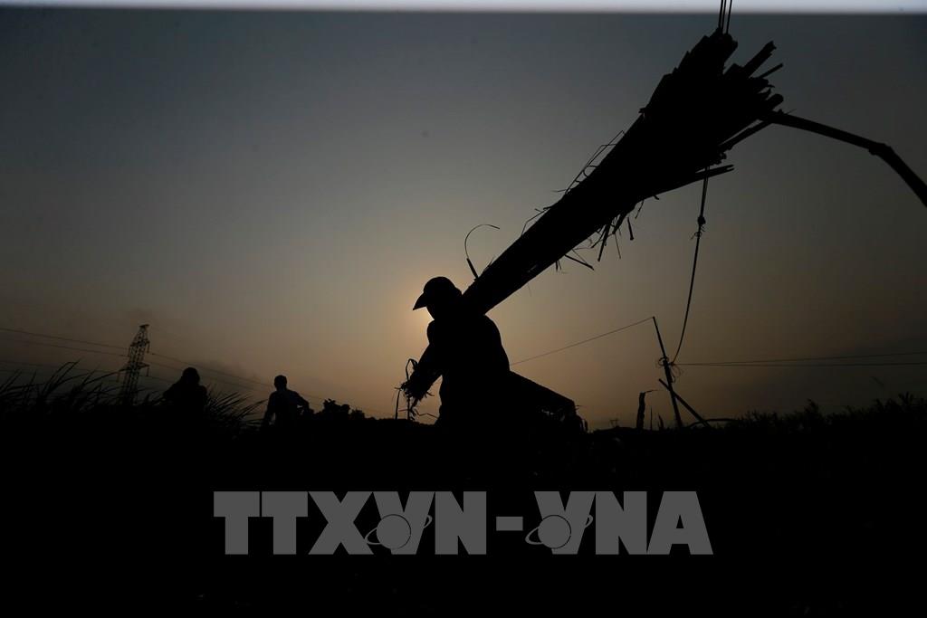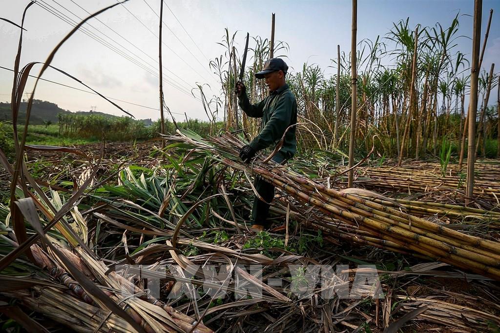 Những người thu hoạch mía miệt mài với công việc của mình trong buổi chiều muộn. Ảnh: Trọng Đạt – TTXVN