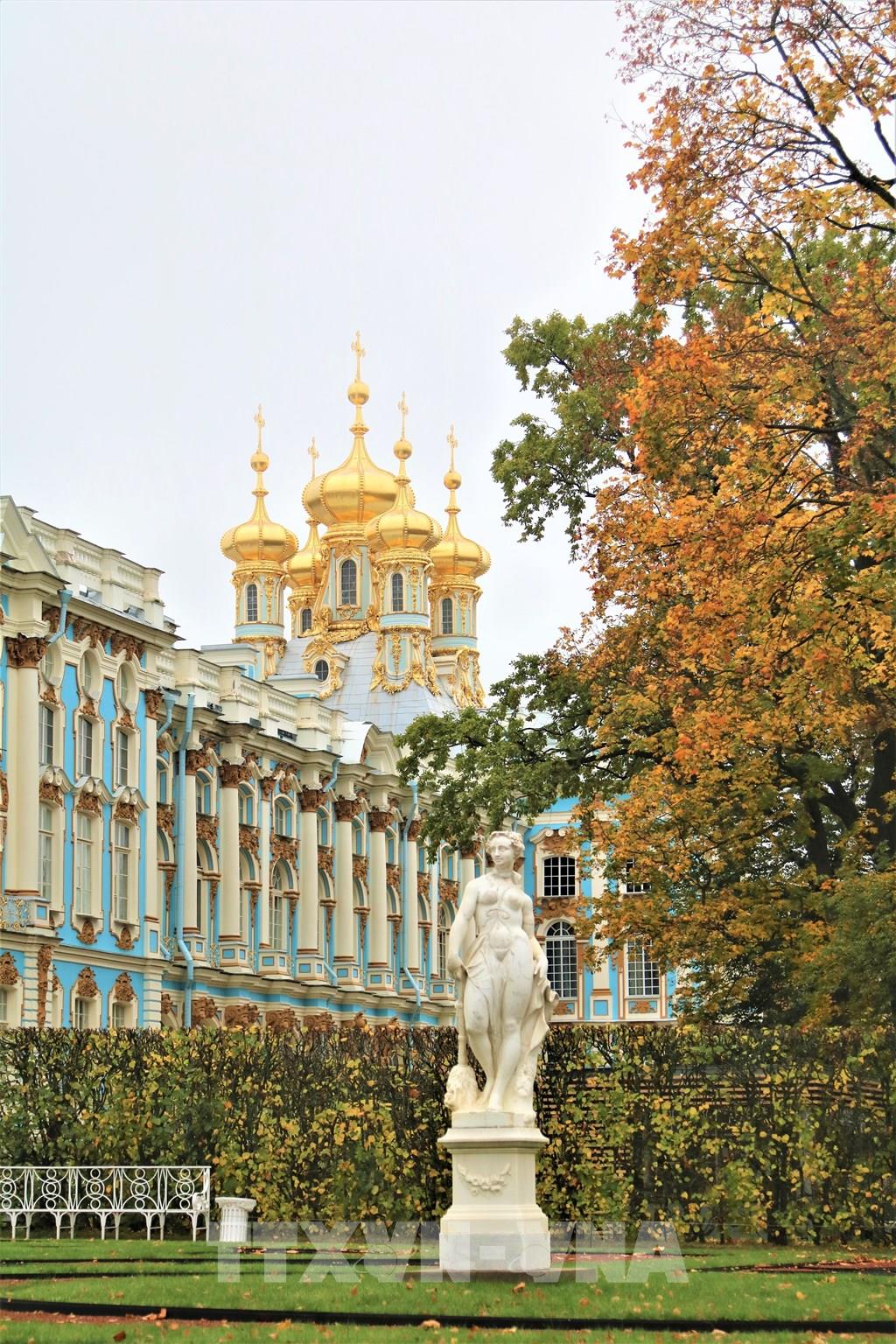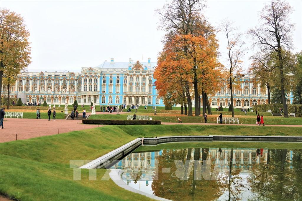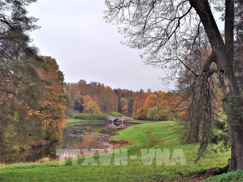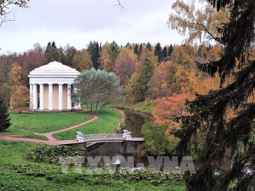 Mùa thu thấm đẫm từng góc nhỏ trong công viên Ekaterina. Ảnh: Duy Trinh - P/v TTXVN tại Liên bang Nga ; Một trong những địa danh có phong cảnh hữu tình để dạo chơi ở thành phố St. Petersburg cổ kính của nước Nga đó là “Làng vua” (Tsarskoe Selo) thuộc thị trấn Pushkin. Từng góc nhỏ, từng cảnh quan nơi đây đều nên thơ trong tiết trời mùa Thu dù là trời nắng đẹp hay u ám, ẩm ướt. Ảnh: Duy Trinh - P/v TTXVN tại Liên bang Nga