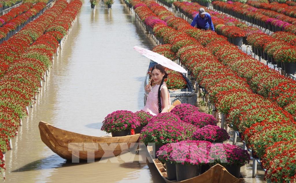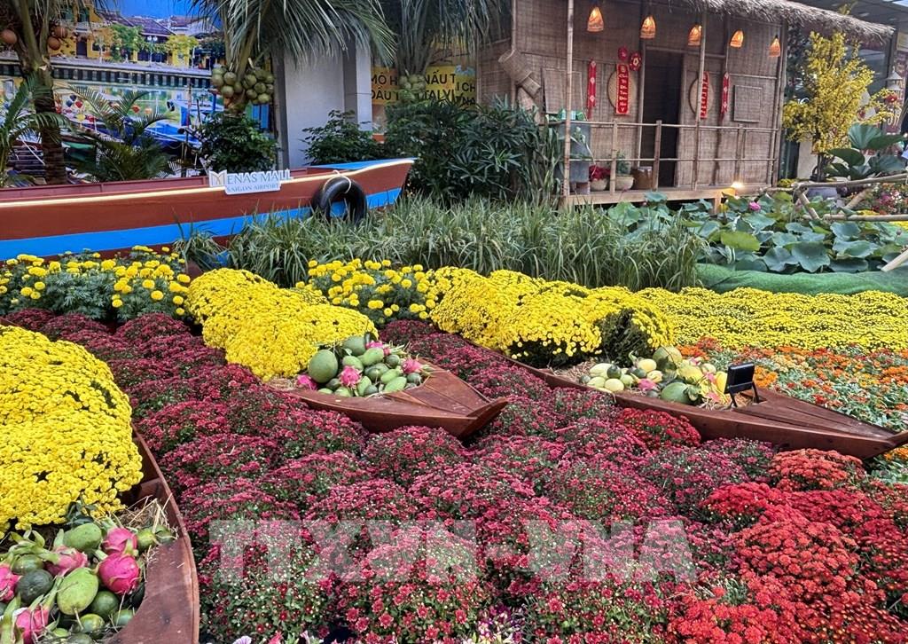 Đường hoa Xuân Menas Mall, quận Tân Bình (TP Hồ Chí Minh) thu hút du khách. Ảnh: Hồng Nhung - TTXVN
