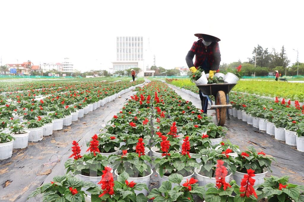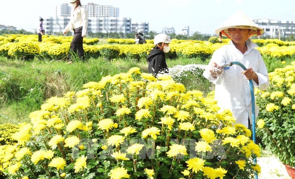 Nông dân tỉnh Phú Yên tích cực chăm sóc cây, hoa để kịp xuất bán trong dịp Tết. Ảnh: Tường Quân - TTXVN