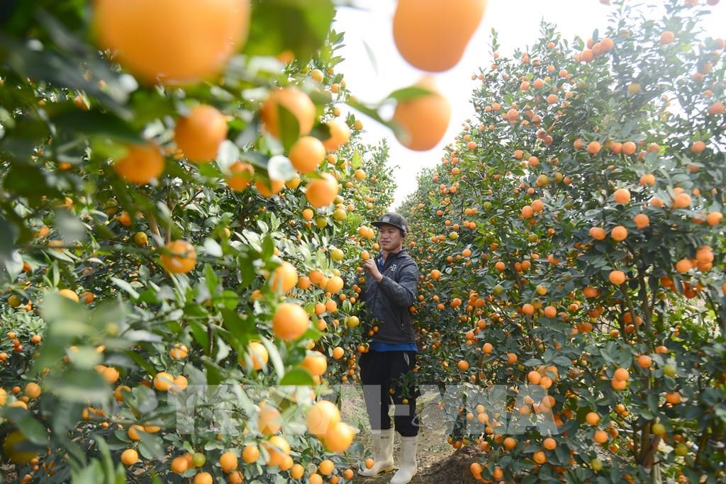 Vườn bưởi Diễn vàng rực trước Tết nguyên đán Ất Tỵ. Ảnh: Hoàng Hiếu - TTXVN