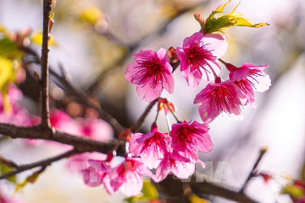 Mai anh đào nở rộ ở thị trấn Lạc Dương, Lâm Đồng. Ảnh: Nguyễn Dũng - TTXVN