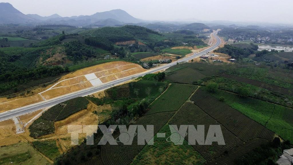 Thi công tuyến cao tốc Quốc lộ 45 - Nghi Sơn dài 43 km, đi qua địa phận các tỉnh Thanh Hóa và Nghệ An. Ảnh: Huy Hùng - TTXVN