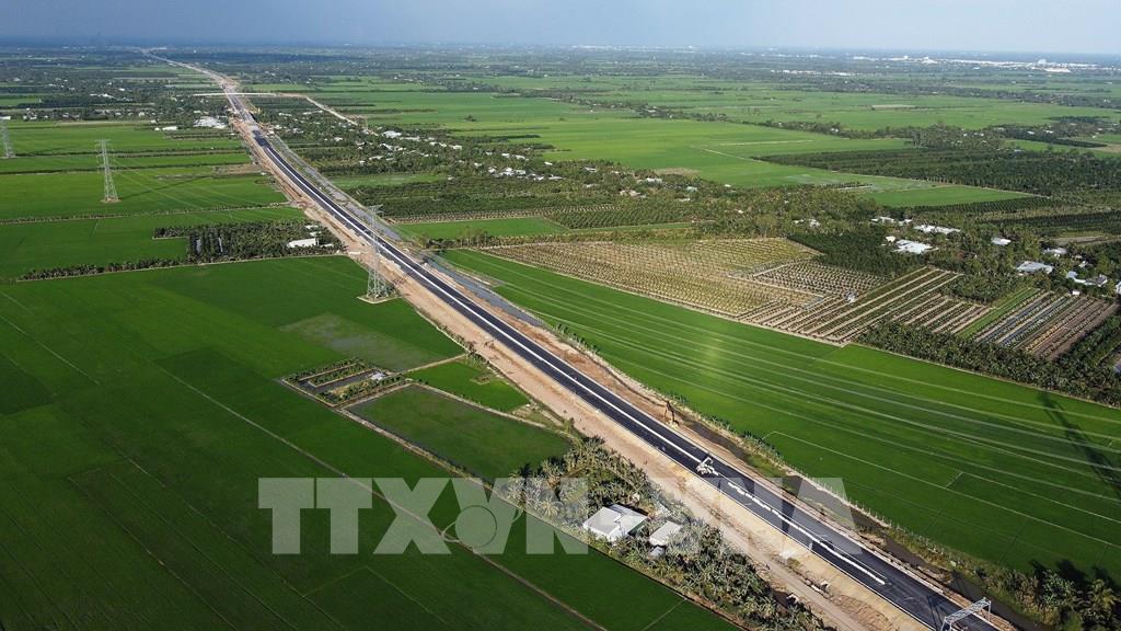Tuyến cao tốc Mỹ Thuận - Cần Thơ dài 23km, đi qua 2 tỉnh Vĩnh Long và Đồng Tháp, vừa chính thức thông xe hai chiều vào ngày 30/12, kịp phục vụ người dân miền Tây trong dịp Tết dương lịch 2024. Ảnh: Huy Hùng - TTXVN