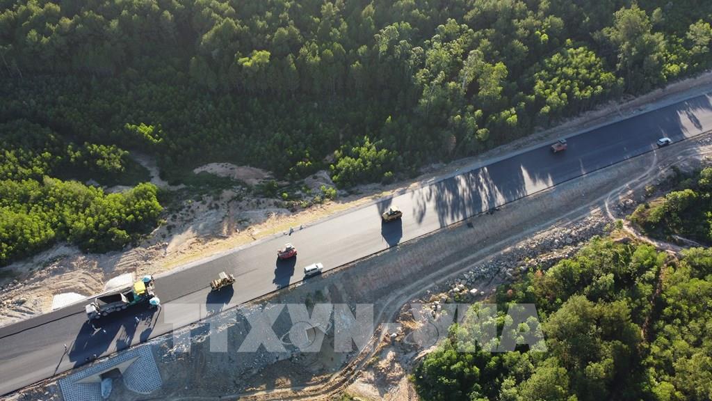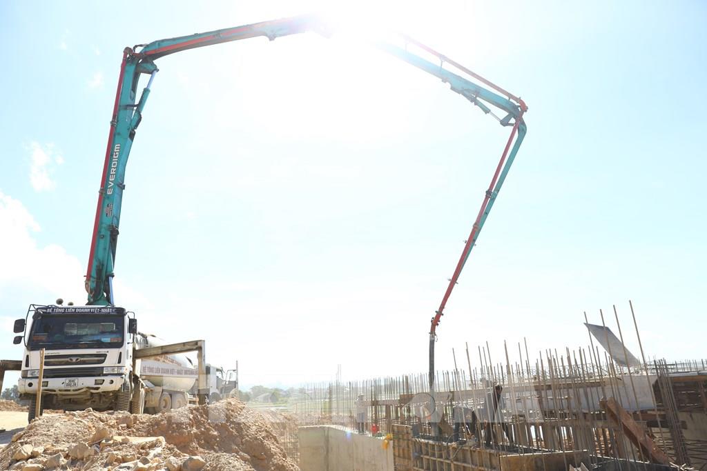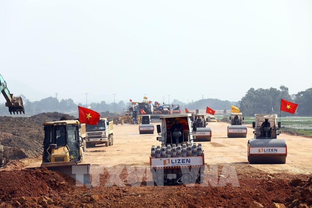 Thi công giai đoạn nước rút trên tuyến cao tốc Nghi Sơn - Diễn Châu. Tuyến cao tốc này dài 50 km, đi qua 2 tỉnh Thanh Hóa và Nghệ An đã được đưa vào khai thác từ tháng 10/2023. Ảnh: Huy Hùng - TTXVN
