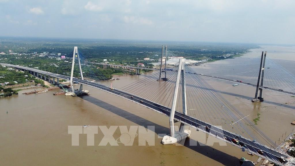 Cầu Mỹ Thuận 2 dài 7km, nối 2 tỉnh Vĩnh Long và Tiền Giang vừa chính thức được đưa vào khai thác ngày 24/12/2023. Ảnh: Huy Hùng - TTXVN