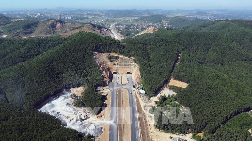 Hầm Trường Vinh xuyên núi Mồng Gà trên tuyến cao tốc Nghi Sơn - Diễn Châu, nối thị xã Nghi Sơn (Thanh Hóa) với thị xã Hoàng Mai (Nghệ An) với 2 ống hầm hoàn chỉnh dài 450 m. Ảnh: Huy Hùng – TTXVN