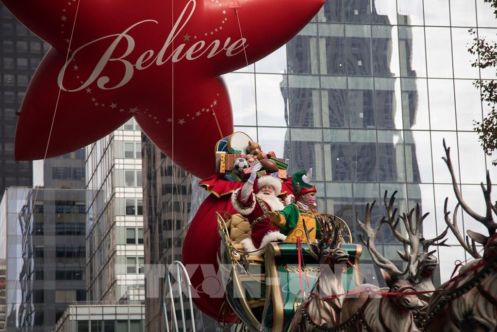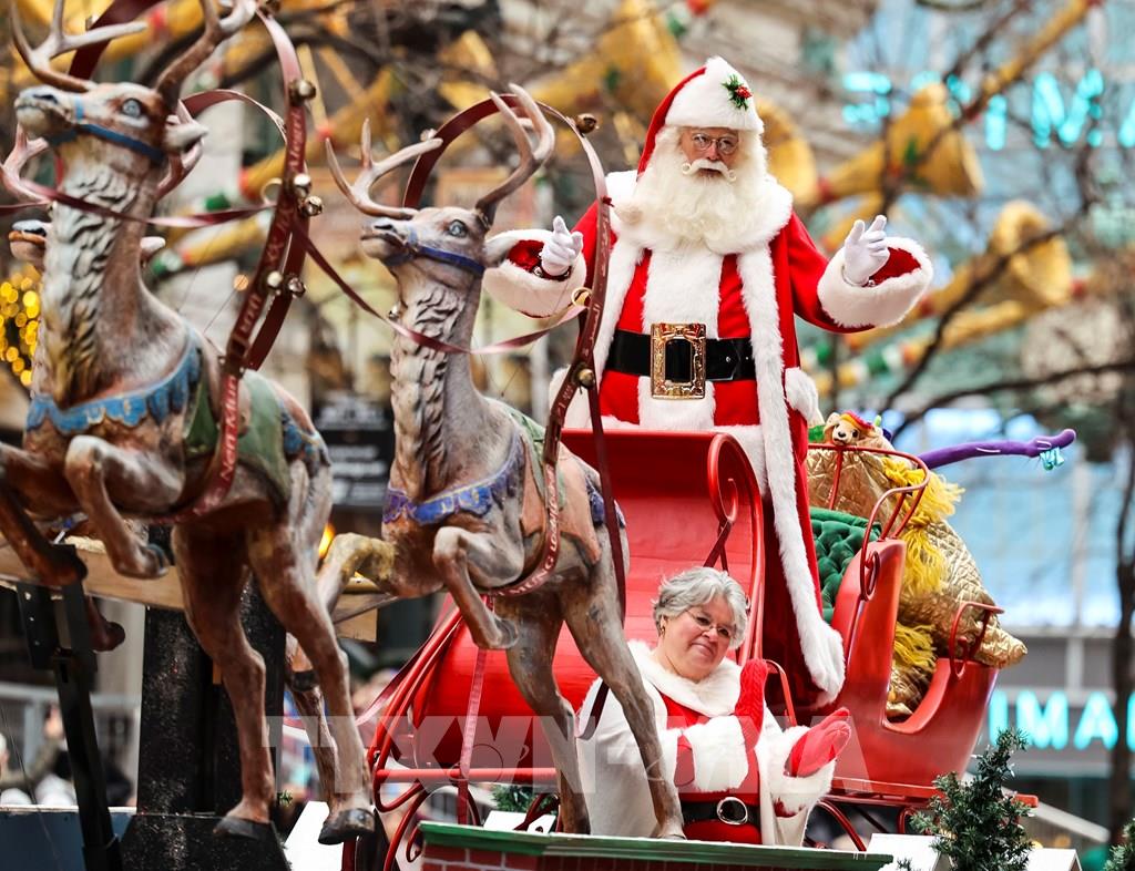 Nghệ sĩ trong trang phục hóa trang Ông già Noel tại cuộc diễu hành nhân dịp Lễ Tạ ơn ở Chicago, Mỹ, ngày 25/11/2021. Ảnh: THX/ TTXVN