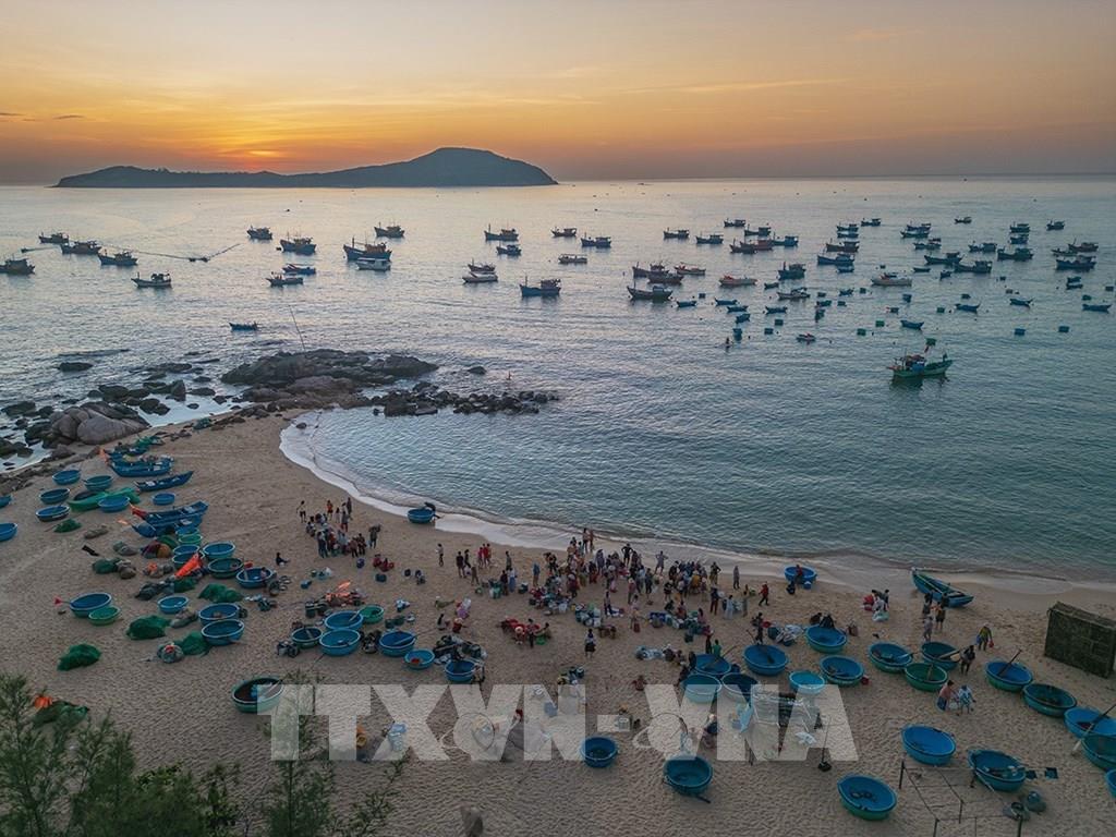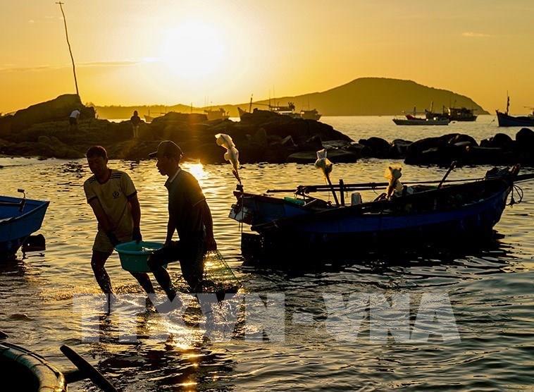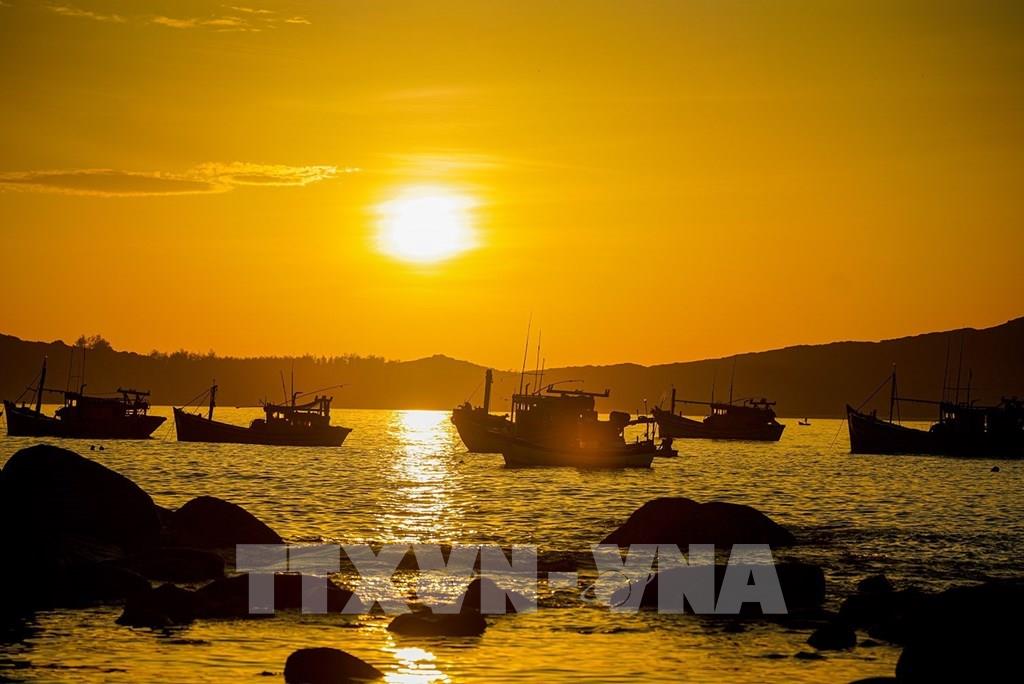 Khi những tia nắng đầu tiên của ngày mới xuất hiện là lúc những tàu cá lớn nhỏ mang sản phẩm về từ biển khơi. Ảnh: Khánh Hoà - TTXVN