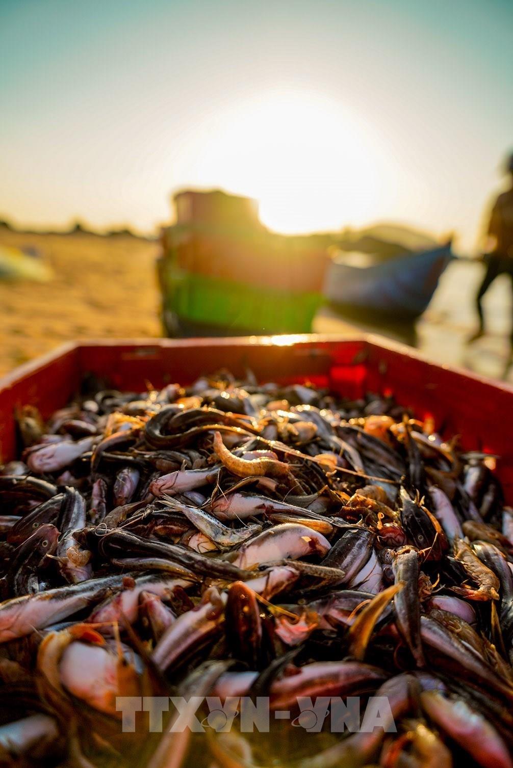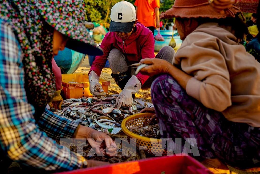 Những loại cá vừa đánh bắt được xử lý để phục vụ người dân địa phương. Ảnh: Khánh Hoà – TTXVN