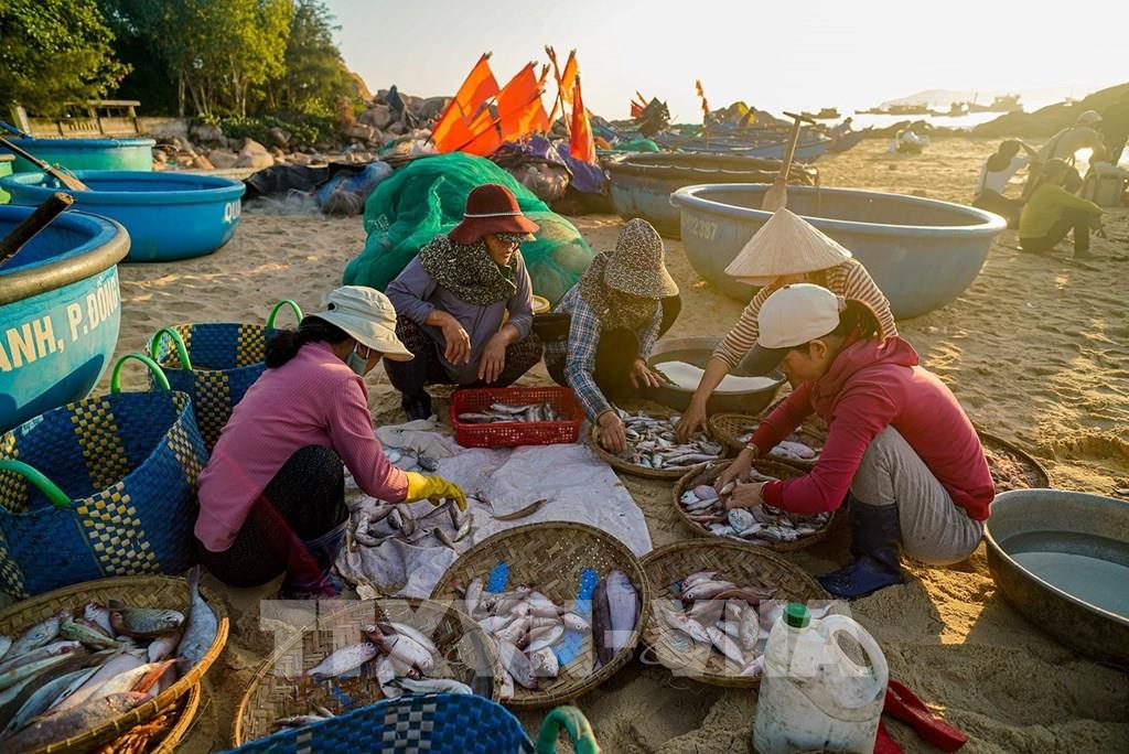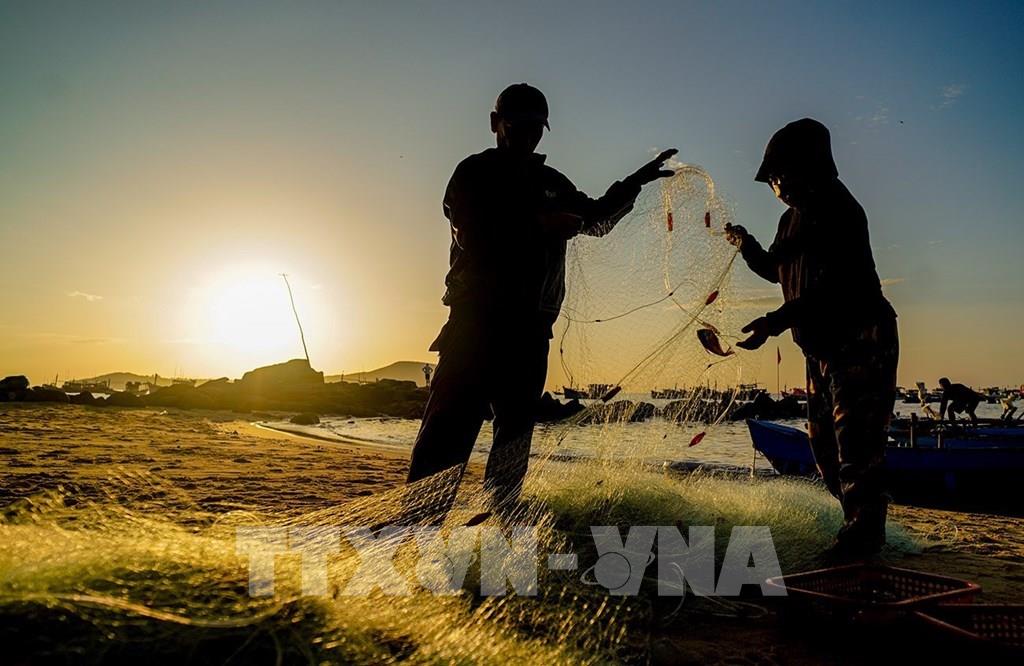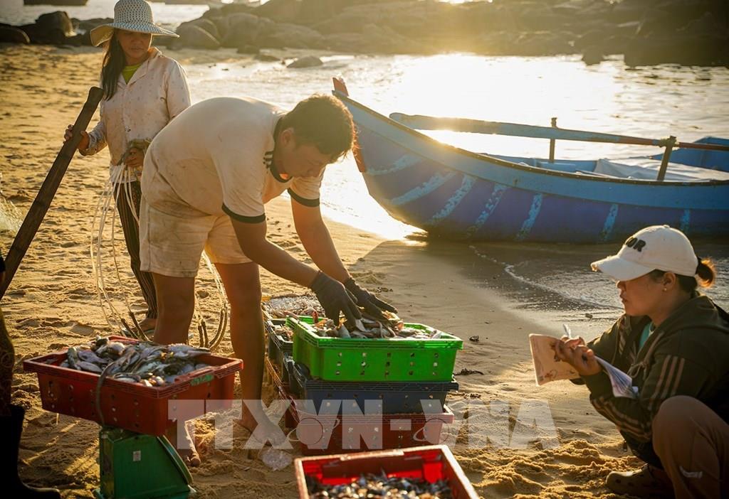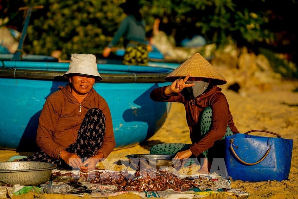 Chân chất, dân dã với những hình ảnh lao động quen thuộc của người dân làng chài. Ảnh: Khánh Hoà – TTXVN
