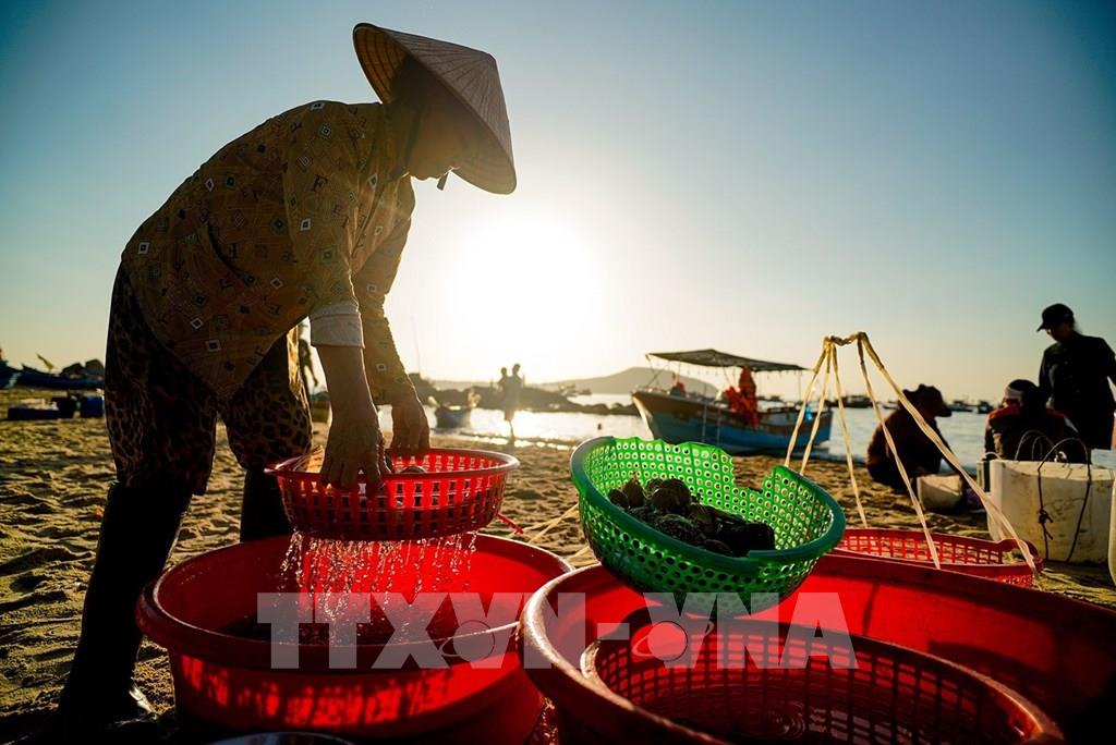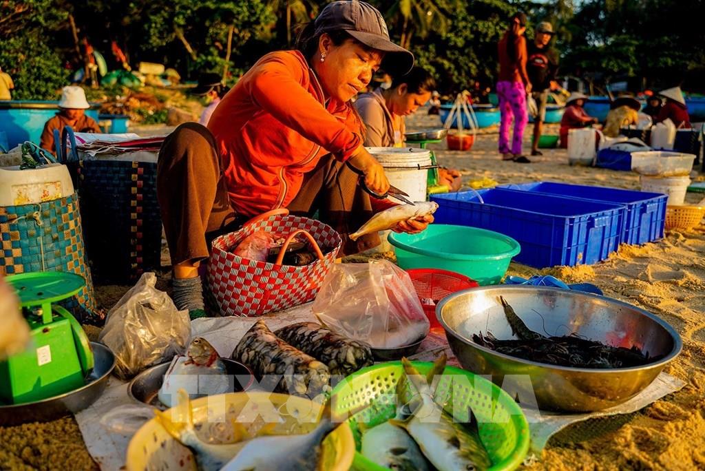 Sự nhộn nhịp, hối hả giống như bao chợ cá của làng chài ven biển. Ảnh: Khánh Hoà - TTXVN