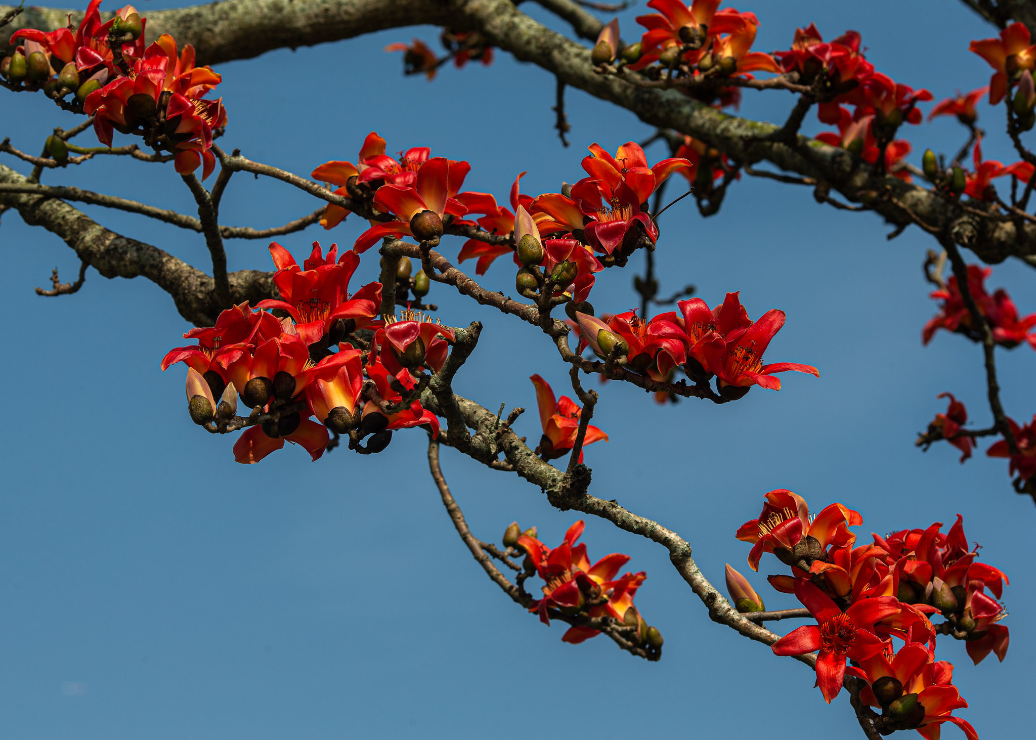 Những bông hoa gạo có một vẻ đẹp lôi cuốn kỳ lạ, nhiếp ảnh gia yêu mến loài hoa này cũng tranh thủ cơ hội để ghi lại từng bức hình kỷ niệm. Ảnh: Phạm Tuấn Anh - TTXVN