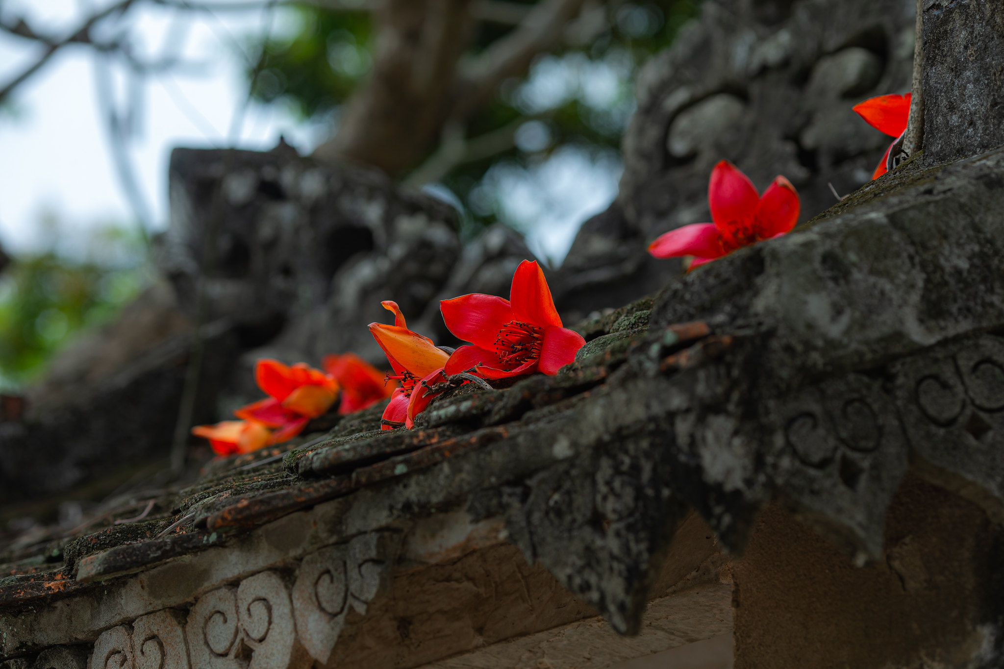 Hoa gạo nở hoa, tô điểm cho không gian ngôi chùa Khả Lương cổ kính. Ảnh: Phạm Tuấn Anh - TTXVN