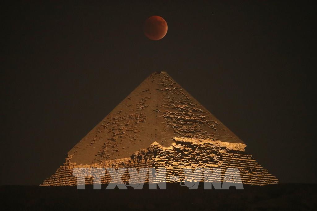 Hiện tượng "Trăng máu" trên bầu trời Giza, Ai Cập, ngày 7/9/2025. Ảnh: THX/TTXVN