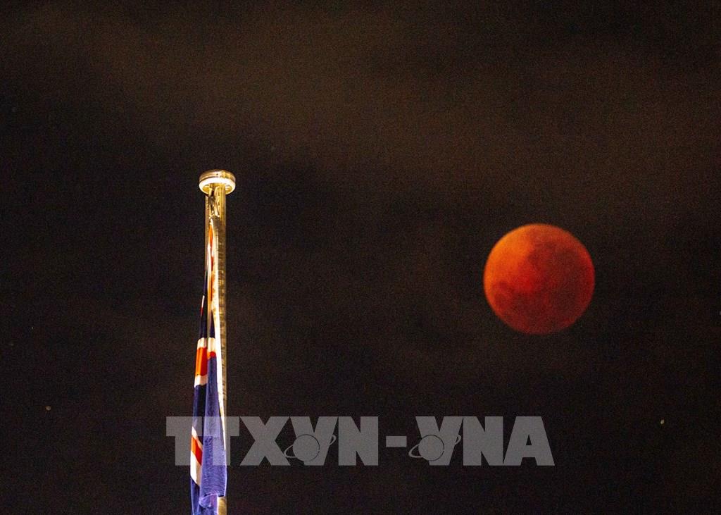 Hiện tượng "Trăng máu" trên bầu trời Canberra, Australia, ngày 8/9/2025. Ảnh: THX/TTXVN