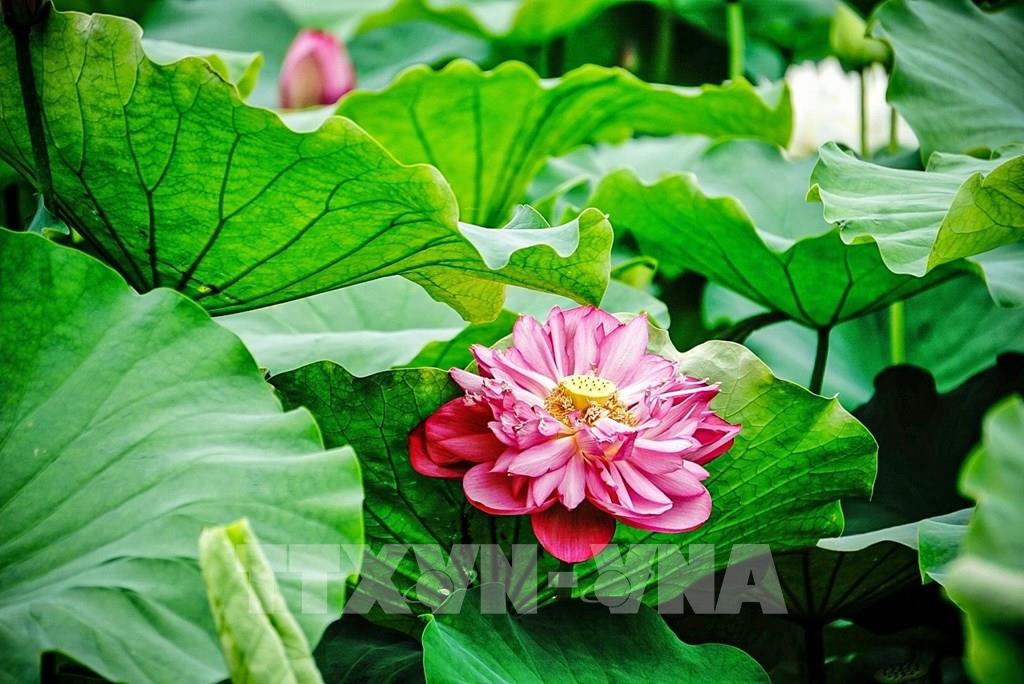 Vẻ đẹp của những đoá sen bách diệp hồ Tây. Ảnh: Khánh Hoà - TTXVN