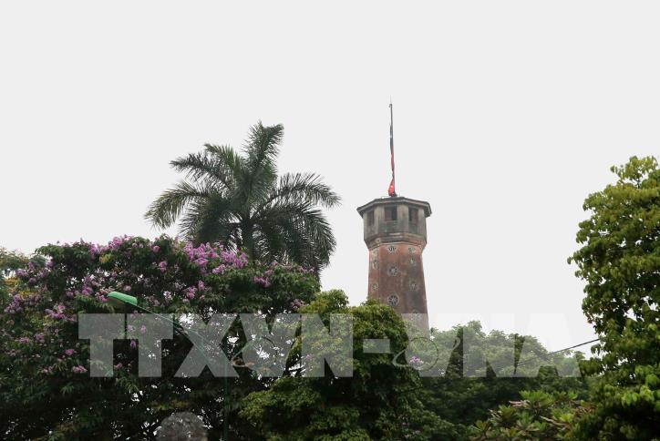 Cột cờ Hà Nội trên đường Điện Biên Phủ treo cờ rủ. Ảnh: Văn Điệp – TTXVN