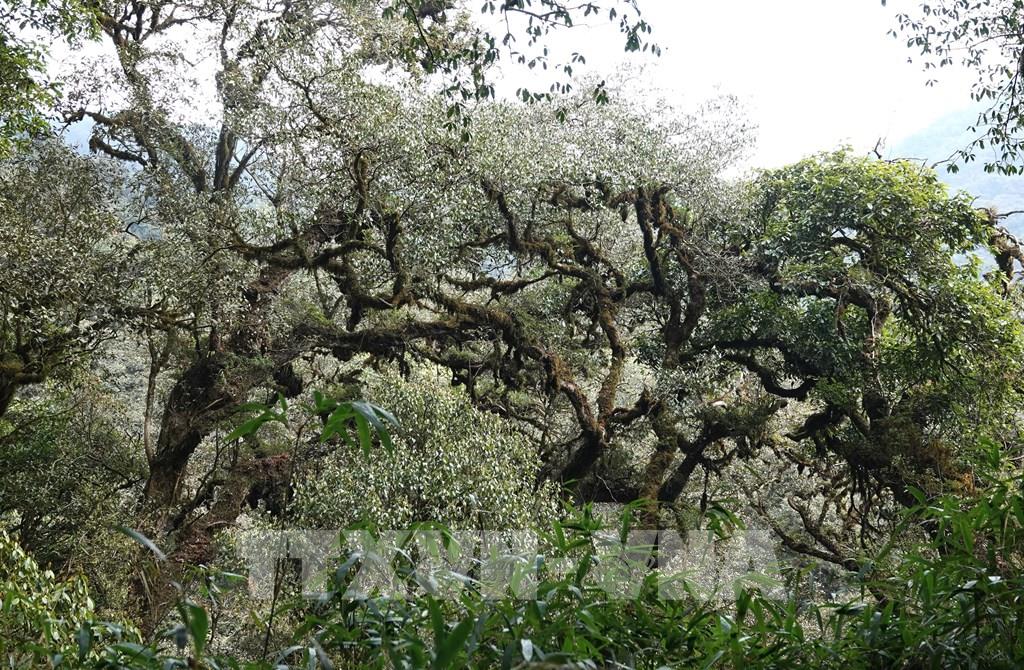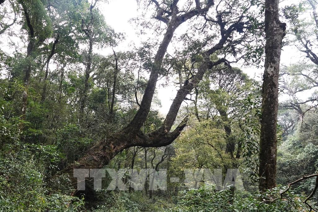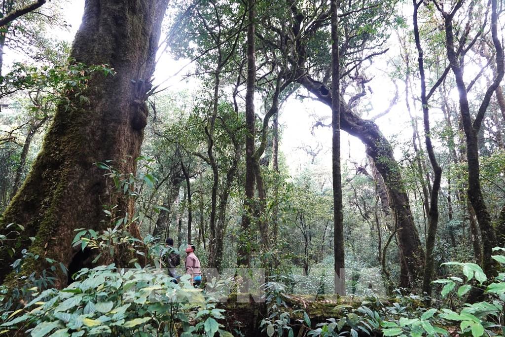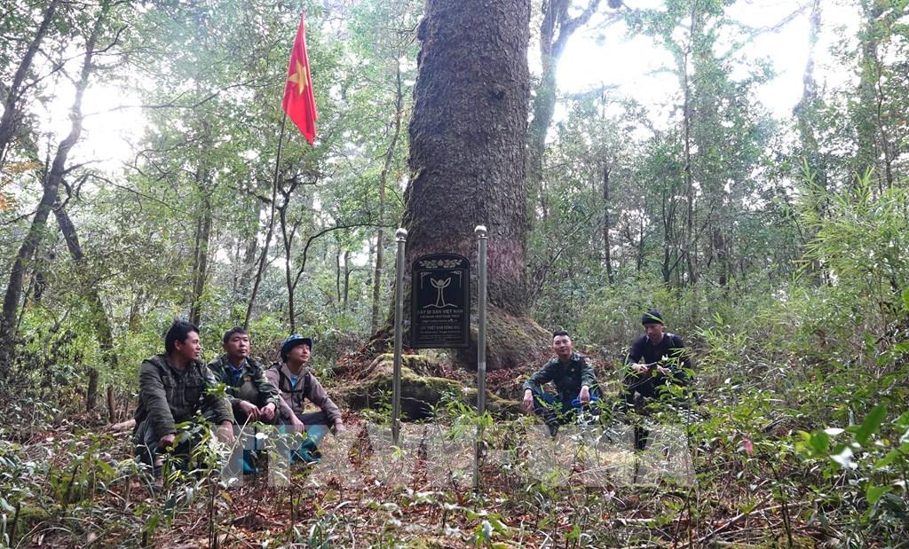 Quần thể cây thiết sam Đông Bắc được chính quyền địa phương gắn biển cây Di sản Việt Nam. Ảnh: Tuấn Anh-TTXVN