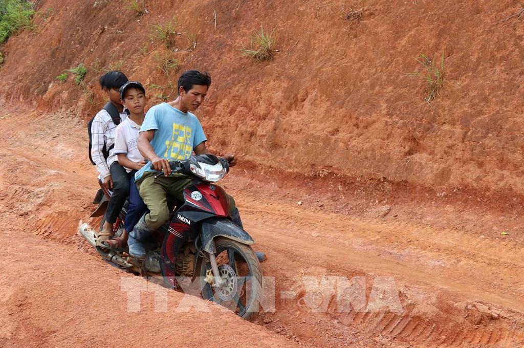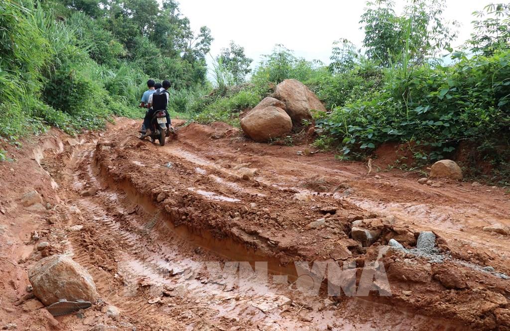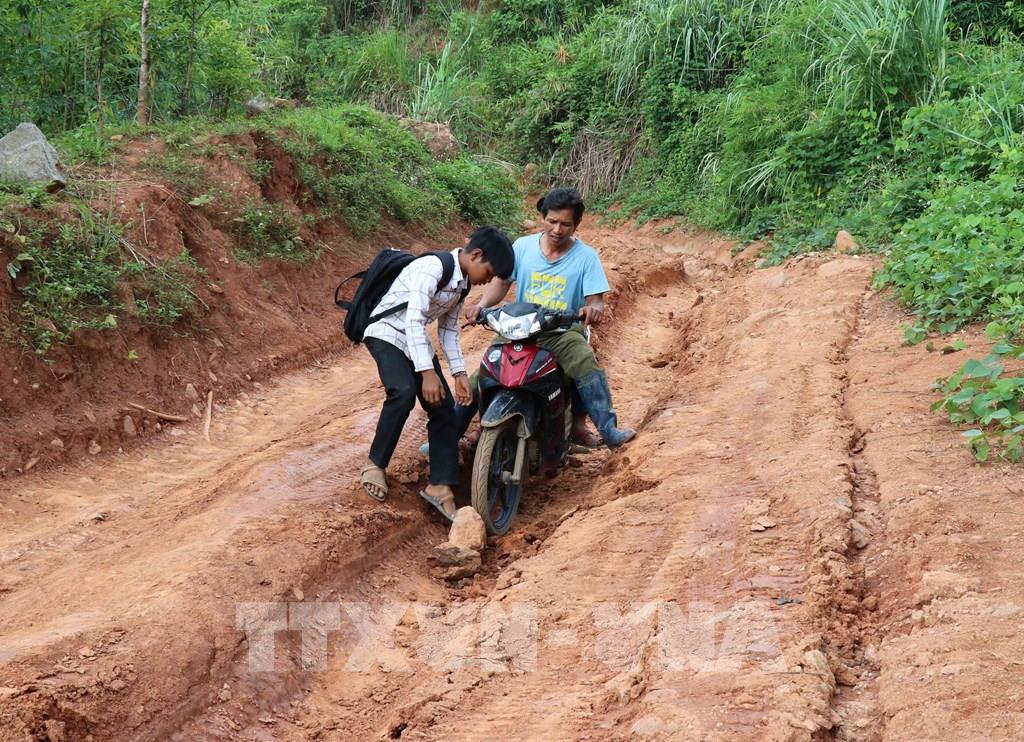 Những đoạn đường hằng ngày giáo viên dưới xuôi phải ngược đèo cõng chữ về làng Đê Kôn. Ảnh: Hồng Điệp - TTXVN