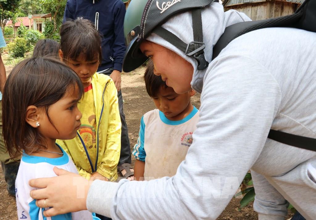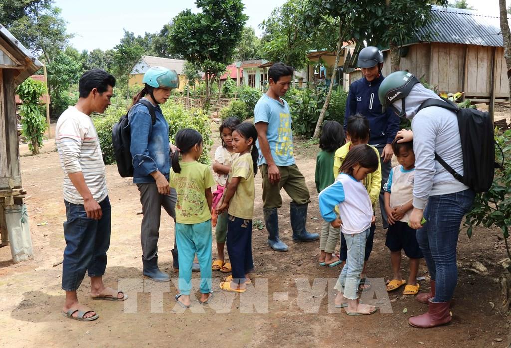 Giáo viên về làng Đê Kôn vận động học sinh ra lớp trước ngày khai giảng. Ảnh: Hồng Điệp - TTXVN