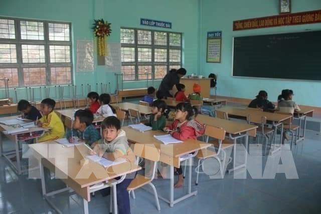Học sinh chăm ngoan là niềm động viên cho thầy, cô mỗi ngày vượt khó khăn đến trường giảng dạy. Ảnh: Hồng Điệp - TTXVN