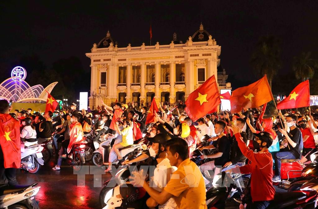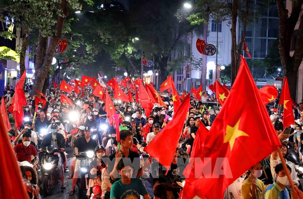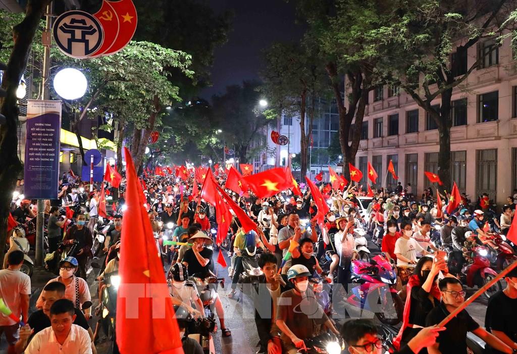 Người dân Thủ đô ăn mừng đội U23 Việt Nam giành Huy chương Vàng SEA Games 31. Ảnh: An Đăng - TTXVN