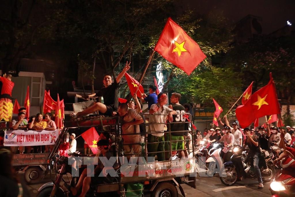 Người dân ra đường ăn mừng chức vô địch U23 Việt Nam. Ảnh: Hoàng Hiếu - TTXVN