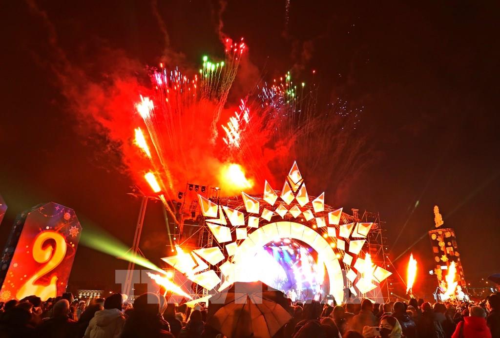 Người dân chào đón Năm mới 2022 tại thủ đô Minsk, Belarus ngày 1/1/2022. Ảnh: THX/TTXVN