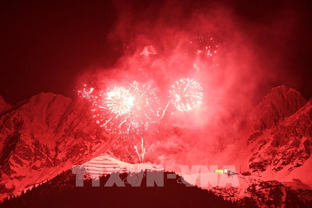 Pháo hoa mừng đón Năm mới 2022 tại Innsbruck, Áo ngày 1/1/2022. Ảnh: AFP/TTXVN