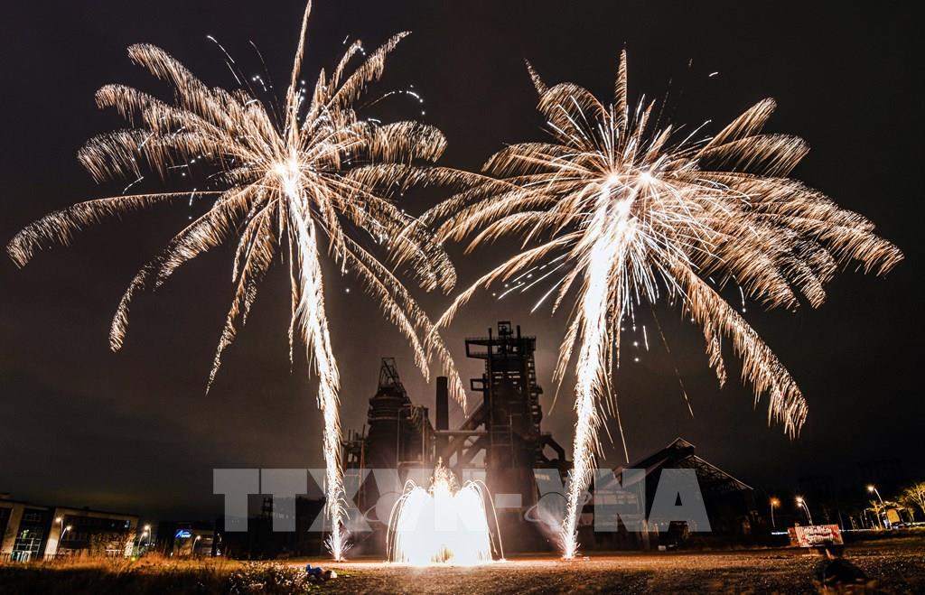 Pháo hoa lung linh mừng Năm mới 2022 tại Dortmund, Đức đêm 31/12/2021. Ảnh: AFP/TTXVN
