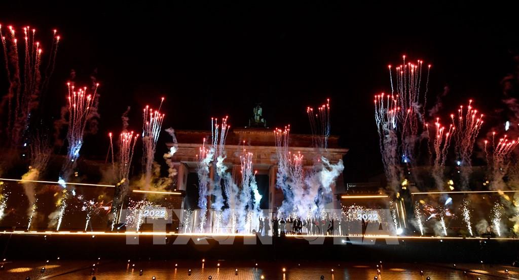 Pháo hoa lung linh mừng Năm mới 2022 tại cổng chào Brandenburg, Berlin, Đức ngày 1/1/2022. Ảnh: AFP/TTXVN
