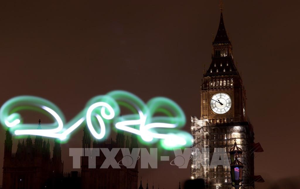 Thủ đô London, Anh huyền ảo trong màn ánh sáng nhiều sắc màu đón Năm mới 2022, ngày 1/1/2022. Ảnh: THX/TTXVN