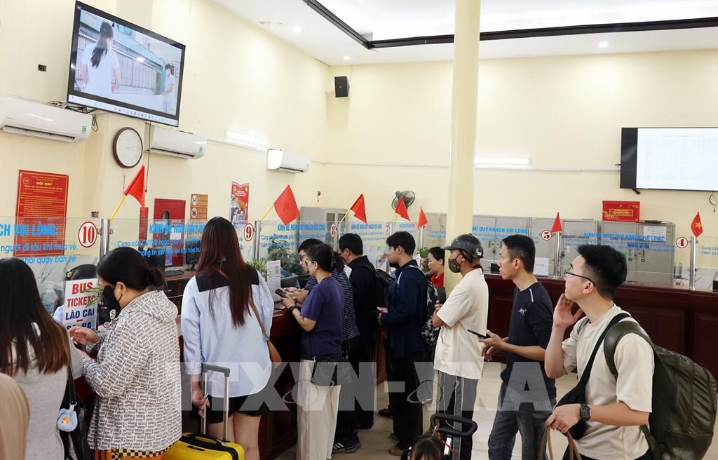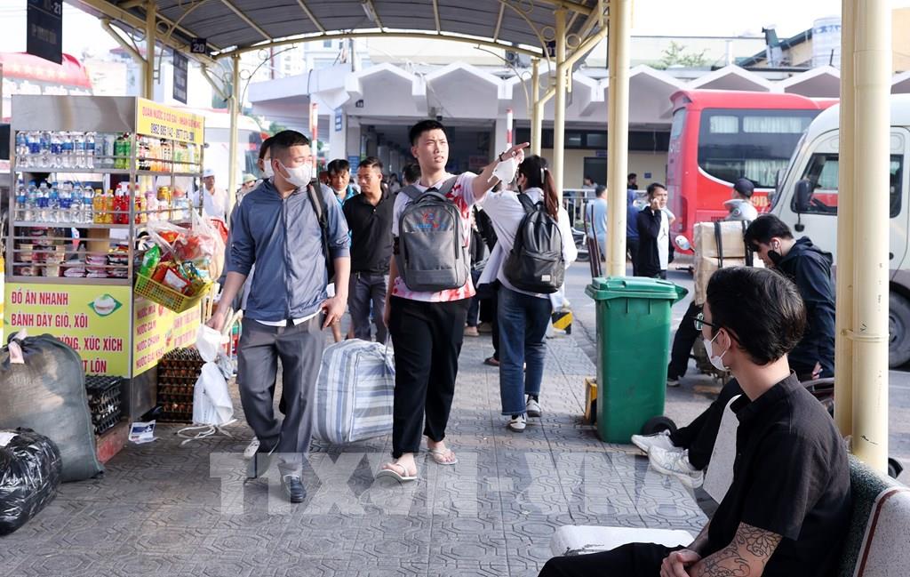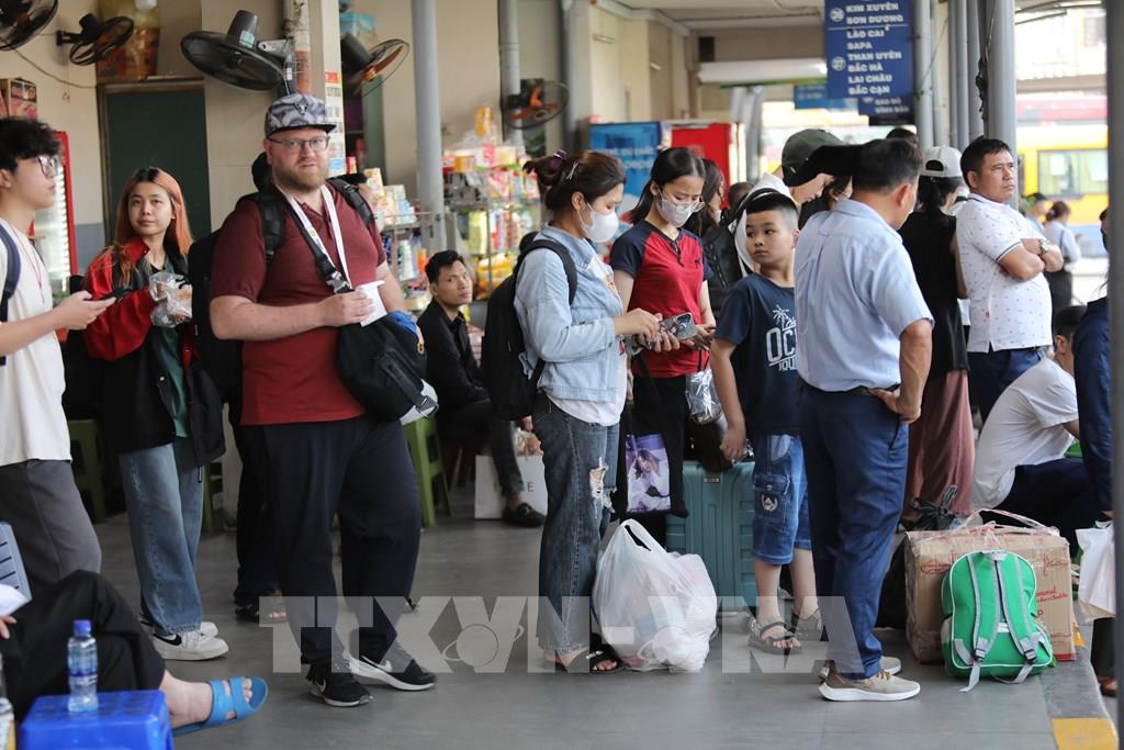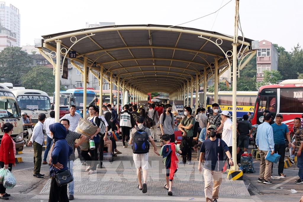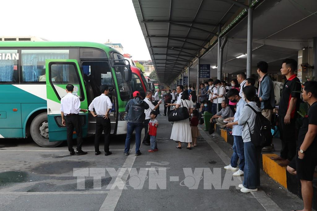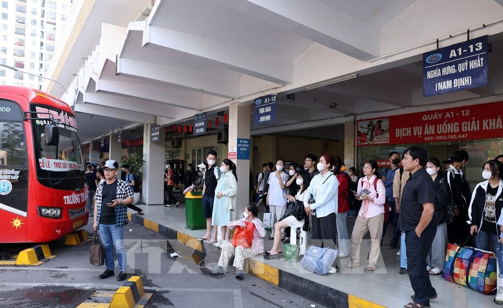 Nhiều hành khách chờ xe tại Bến xe Gia Lâm. Ảnh: Thành Phương- TTXVN