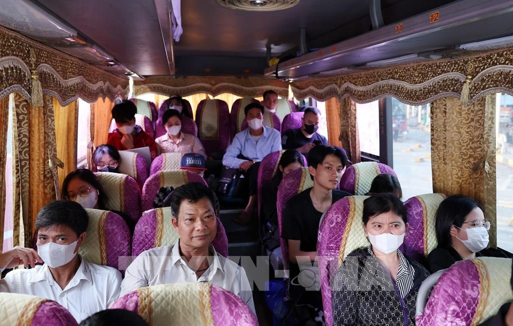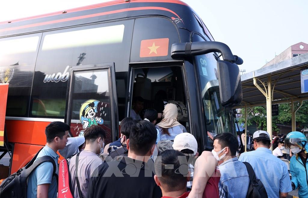 Ngưởi dân hối hả rời Hà Nội về quê nghỉ lễ tại bến xe Giáp Bát. Ảnh: Quốc Khánh - TTXVN