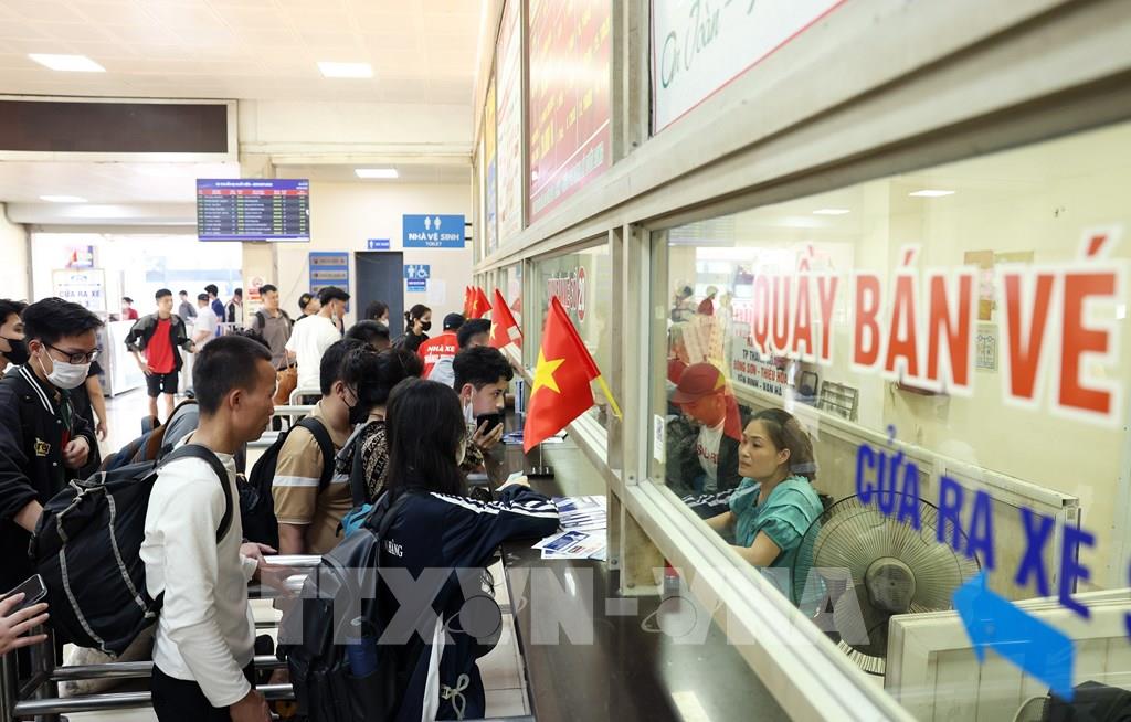 Người dân vội vàng xếp hàng mua vé xe tại bến xe Giáp Bát. Ảnh: Quốc Khánh - TTXVN