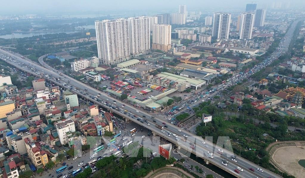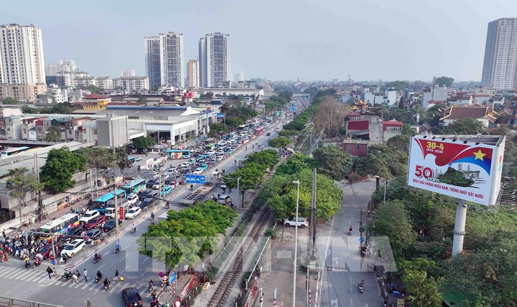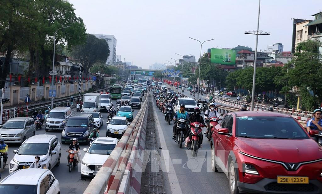 Từ trên cầu Cầu Vĩnh Tuy hướng ra ngoại thành vào đường Cổ Linh, lượng giao thông ngày càng tăng. Ảnh: An Đăng - TTXVN