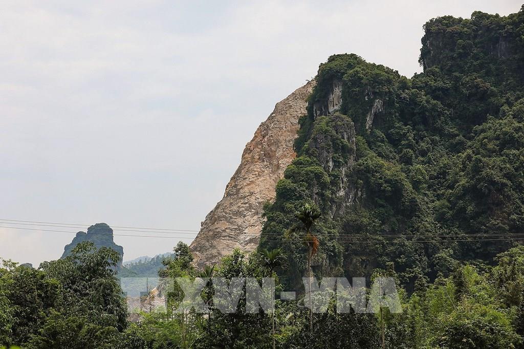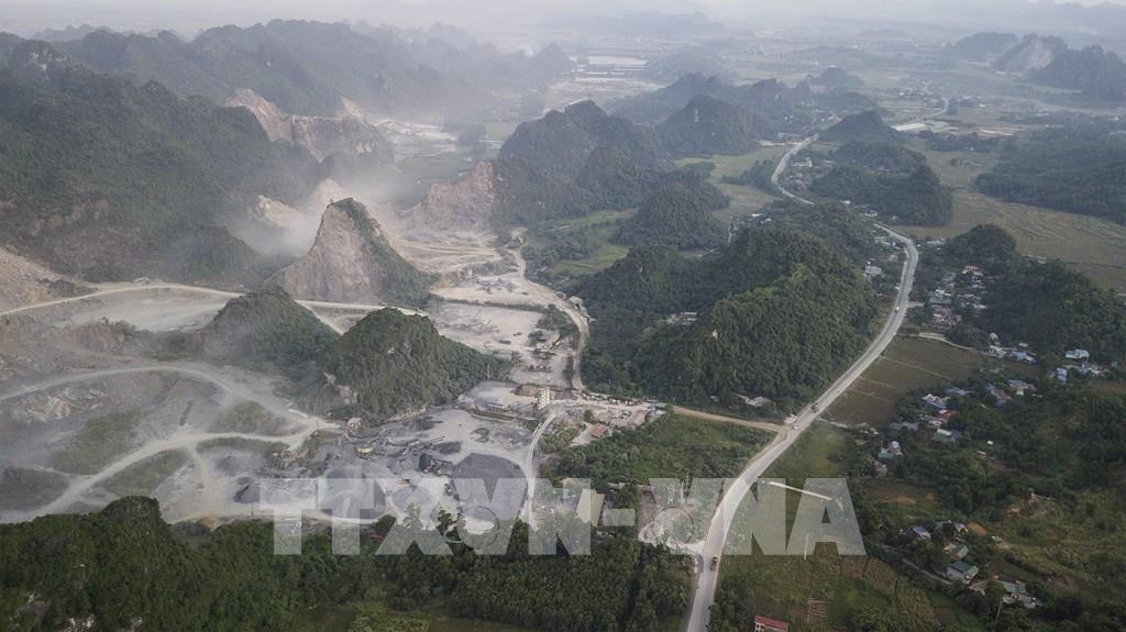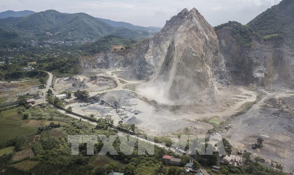 Toàn cảnh công trường khai thác đá nằm ngay cạnh đường mòn Hồ Chí Minh đoạn qua địa phận xã Cao Dương, huyện Lương Sơn, Hòa Bình. Ảnh: Trọng Đạt - TTXVN