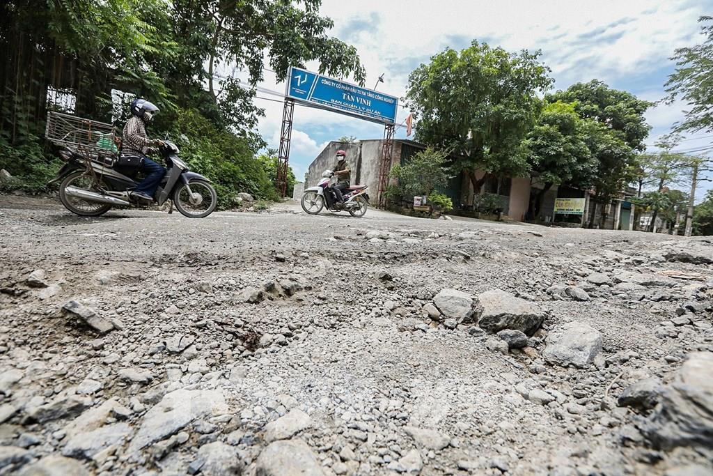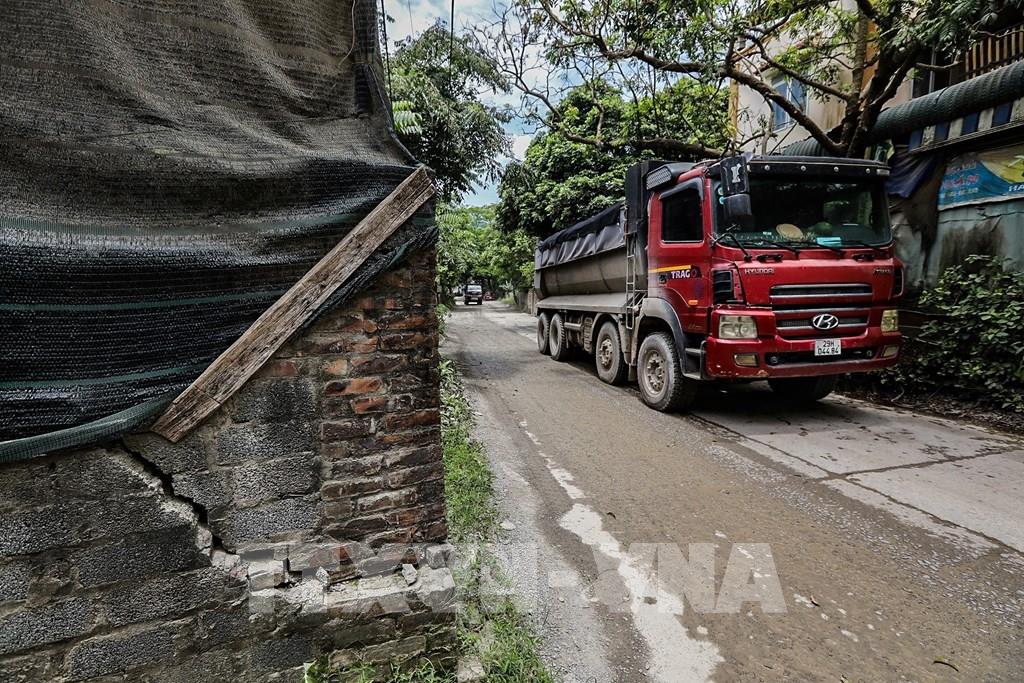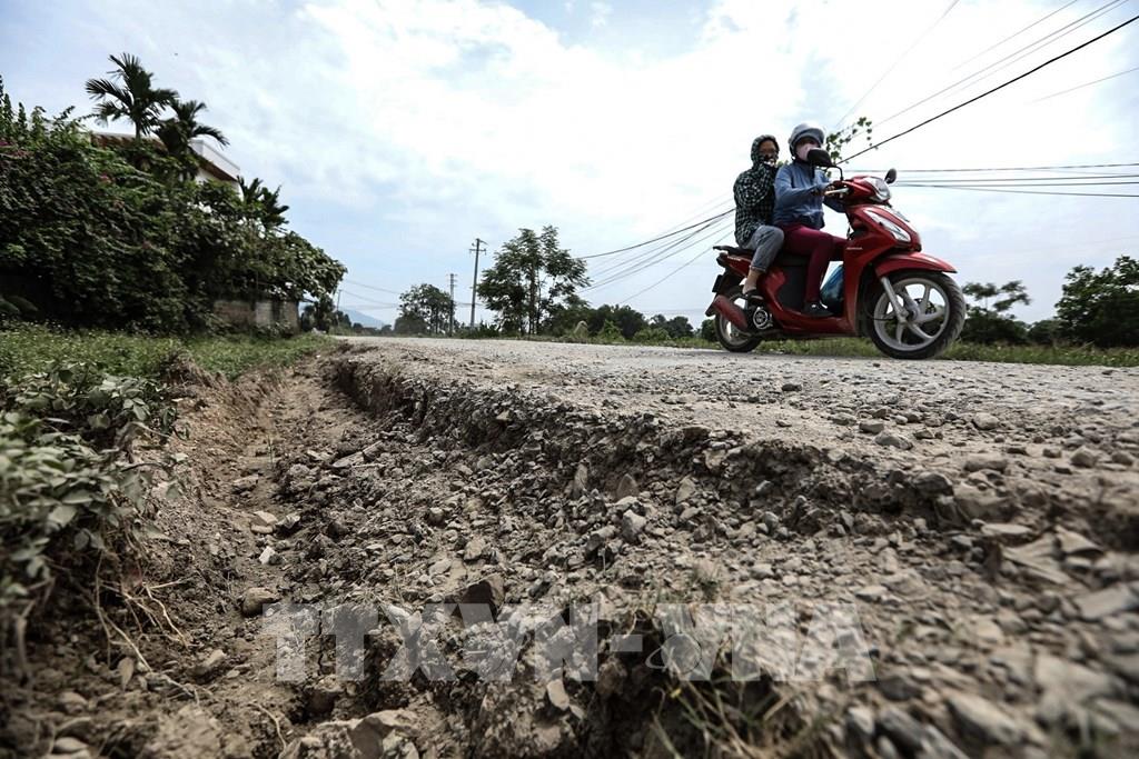 Đoạn đường bị tàn phá hư hỏng nặng nề bởi xe chở đất đá vận chuyển ngày đêm tại các mỏ đá trên địa bàn xóm xã Tân Vinh (Lương Sơn, Hòa Bình). Ảnh: Trọng Đạt - TTXVN