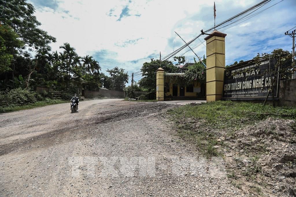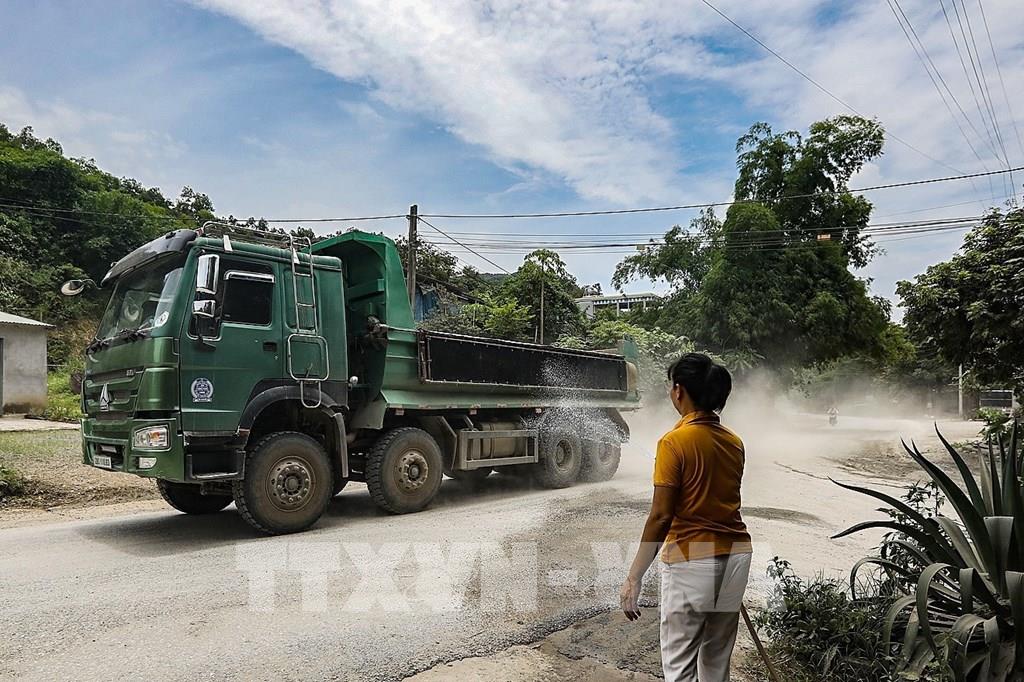 Đường giao thông hư hỏng, khói bụi gây ảnh hưởng nghiêm trọng đến cuộc sống người dân nhiều năm qua đến từ việc khai thác, sản xuất vật liệu xây dựng của các mỏ đá, các nhà máy gạch đóng trên địa bàn các xã tại huyện Lương Sơn. Ảnh: Trọng Đạt – TTXVN