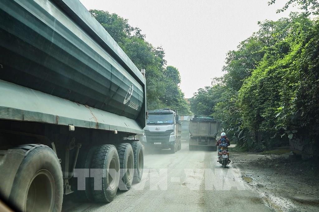 Những đoàn xe chiếm hết diện tích đường nối tiếp nhau ra vào trên con đường Tô Vĩnh Diện, đoạn gần ngã ba Bãi Lạng đi xã Trường Sơn (Lương Sơn, Hòa Bình). Ảnh: Trọng Đạt – TTXVN