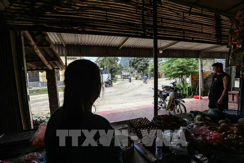 Cửa hàng thực phẩm của người dân tại xóm Rụt, xã Tân Vinh phải di dời sâu vào trong nhà để tránh bụi đường từ các phượng tiện vận chuyển đất đá rầm rập chạy qua hằng ngày. Ảnh: Trọng Đạt – TTXVN