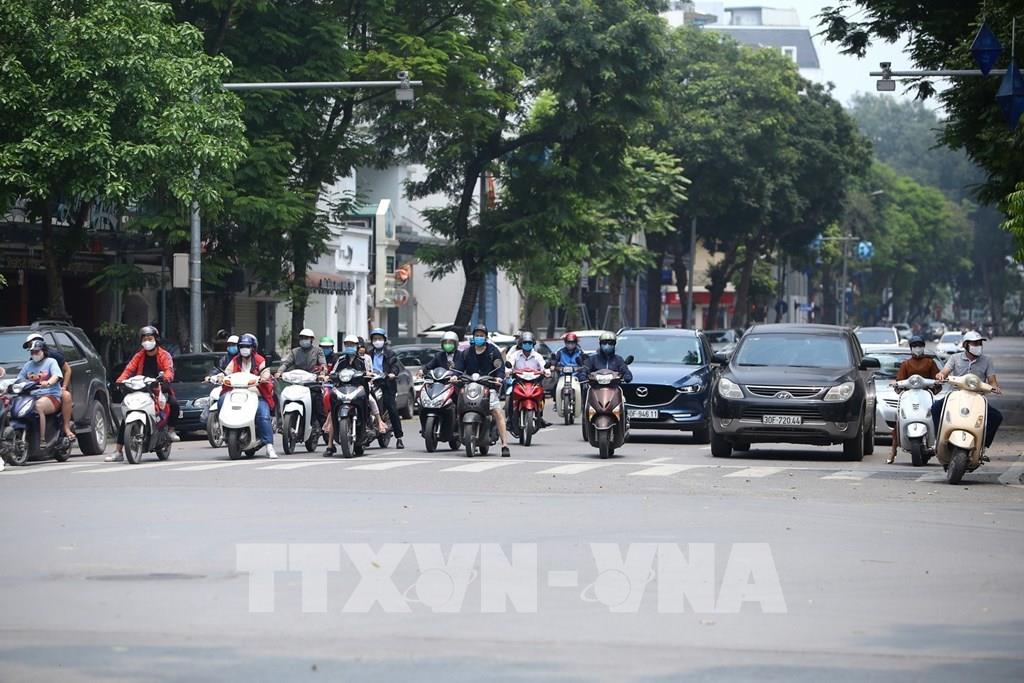 Mật độ người tham gia giao thông trên một số tuyến phố tại Hà Nội lại bắt đầu đông trở lại. Ảnh: Minh Quyết - TTXVN