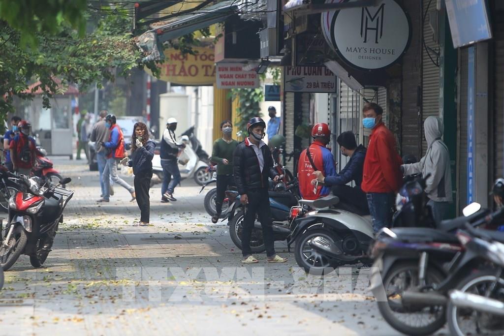 Lượng người đi ra đường, không thực hiện đúng cự ly giãn cách tối thiểu 2m vẫn diễn ra trên một số tuyến phố và nơi cộng cộng. Ảnh: Minh Quyết – TTXVN