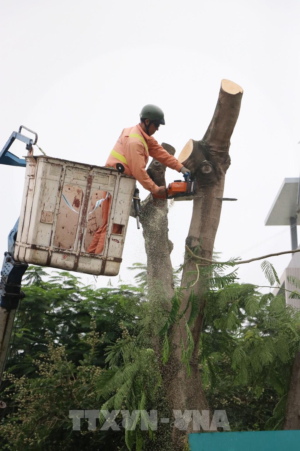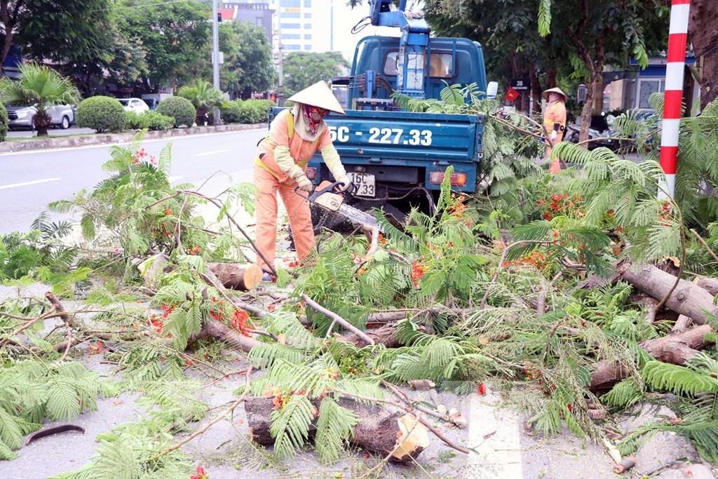 Hải Phòng cắt tỉa cây trên nhiều tuyến phố để phòng chống bão số 3 (Wipha). Ảnh: Hoàng Ngọc – TTXVN